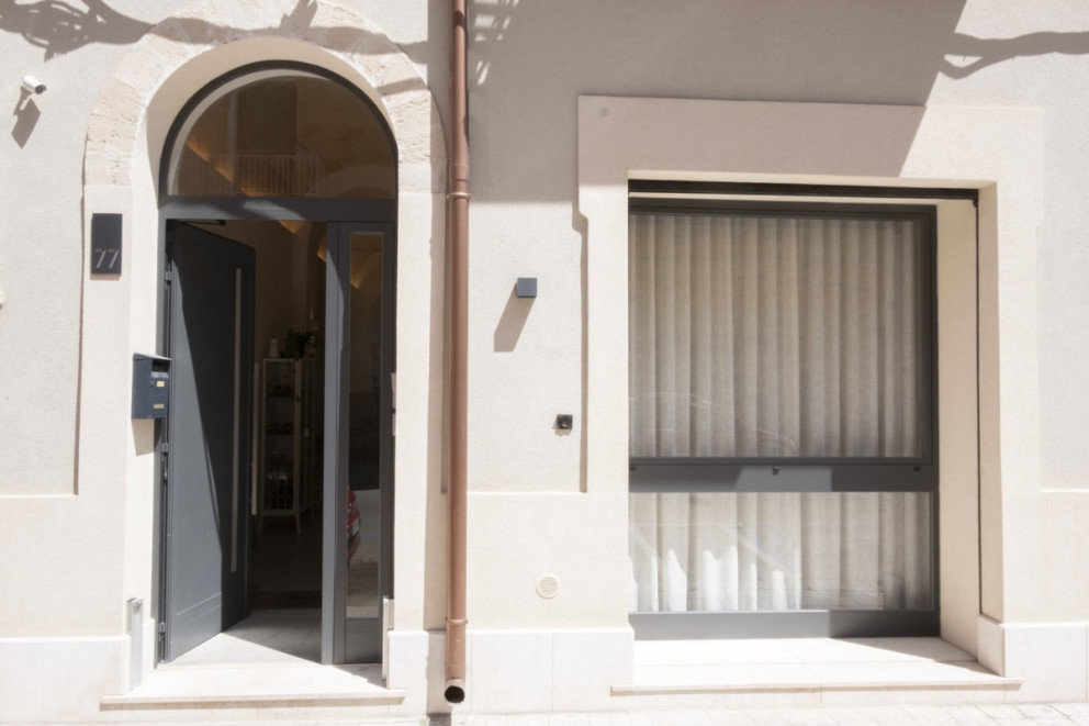 Gli alti tetti a volta, la pavimentazione in originali maioliche siciliane realizzate a mano da un sapiente artigiano del luogo, la tipica scala trapanese posta all’interno della corte, e quell’antico sapore di Sicilia, si fondono creativamente con lo stile vintage e moderni dettagli.